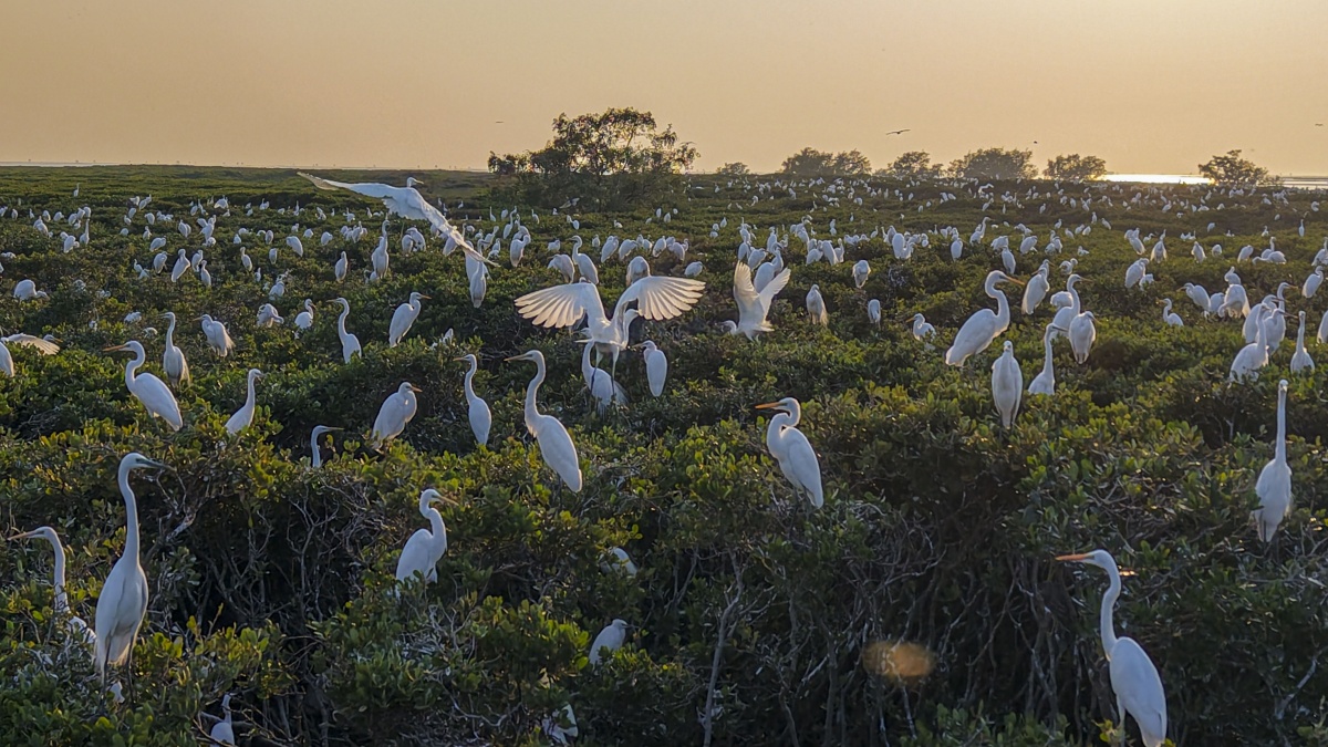 Egrets Dancing Over Blue Waves, Winter Charm Unfolds Along Beibu Gulf Coast