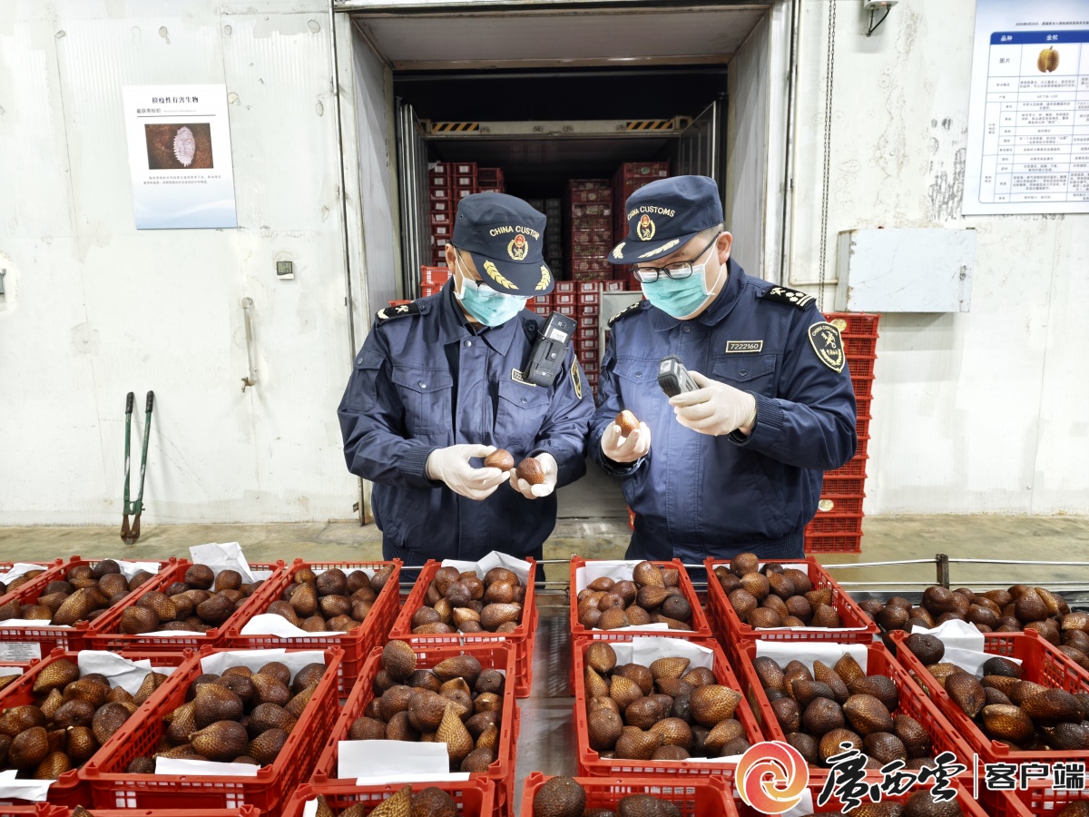 钦州港海关关员对进口蛇皮果开展现场查验。董子越 摄