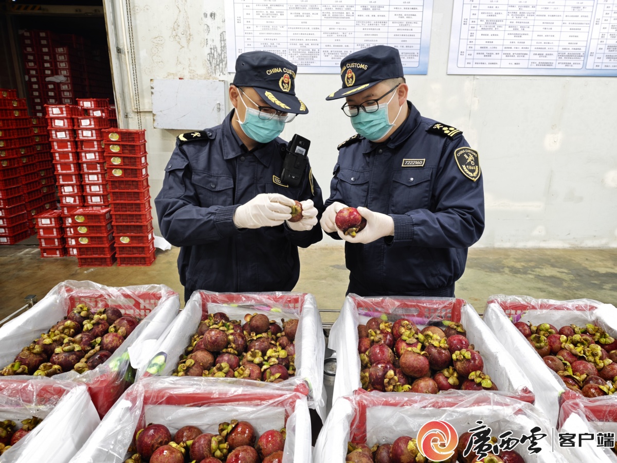 钦州港海关关员对进口山竹开展现场查验。董子越 摄
